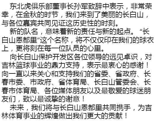 吉林东北虎篮球队获得新冠名!